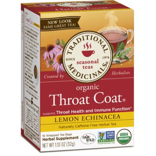 Organic Throat Coat Lemon Echinacea Tea Reviews. It has the most earthy fragrance and taste and does wonders for your throat. Traditional Medicinals Organic Throat Coat Tea Review Vegan This is a product review of the Traditional Medicinals Organic Throat Coat Seasonal Tea.
